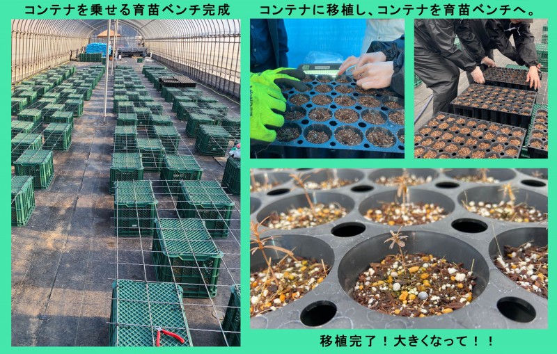 2026.4.17 ヒノキとコウヨウザンが芽吹き、幼苗の移植作業を行いました! 〇令和7年度8月の播種(夏撒きver) ・ヒノキの種が2週間後に芽吹きました。 ・散水は、タイマーによる散水管理で行っています。 ・無事に越冬し、3月にCSCフォレスト女子でキャビネットへの移植作業を実施。 〇令和8年度の播種(春撒きver) ・3月末にヒノキとコウヨウザンを播種しました。 ・春撒verの発芽や成長が遅く、 4月中旬でようやく新生葉が出てきました。もうすぐ移植です。